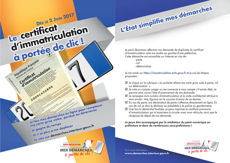 Depuis le 6 novembre 2017, vous devez effectuer vos démarches concernant votre véhicule (changement de titulaire, changement d’adresse, déclaration de cession), et de permis de conduire via internet.